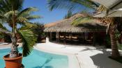 Couverture en paille synthétique (Palmex, garantie 20 ans ignifuge) sur dalle béton.
